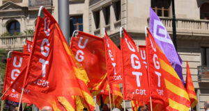 Un centenar de sindicalistes de CCOO i UGT es concentren davant...