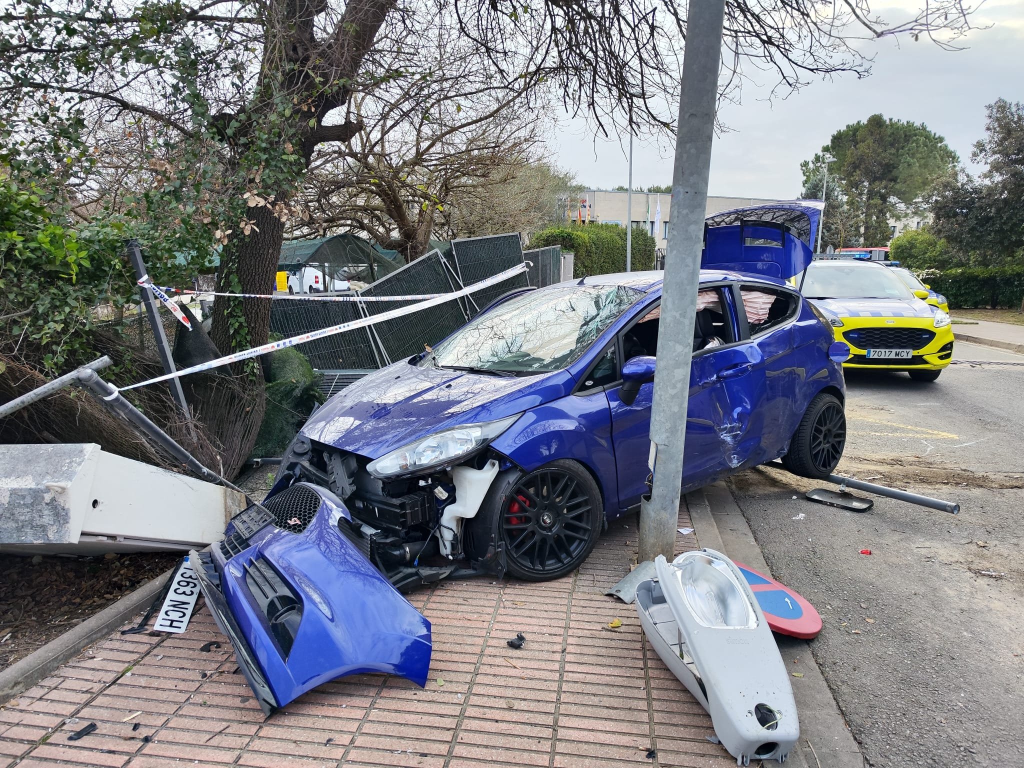 Aquest diumenge al matí, un vehicle va xocar contra un fanal i la tanca perimetral del col·legi Àgora de Sant Cugat, provocant danys materials considerables. El conductor va abandonar el cotxe i va fugir a peu, generant alarma entre els veïns i obligant a la intervenció de la Policia Local.