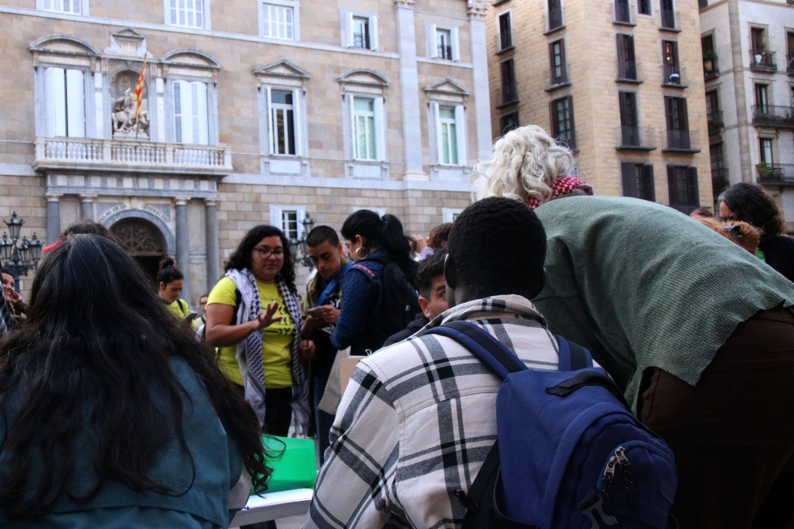 La plataforma Regularització Ja munta unes taules a plaça Sant Jaume de Barcelona per assessorar immigrants