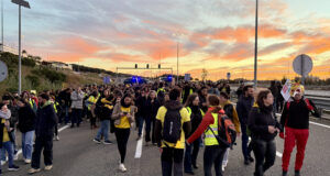 Els professors en vaga tallen la C-32 a Mataró en direcció...